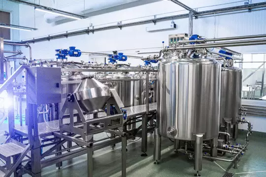 - Оборудования для производства. Нержавеющую сталь используют для изготовления емкостей для хранения и переработки сырья (резервуаров, баков, цистерн), трубопроводов для транспортировки жидкостей и сыпучих продуктов, а также для различных аппаратов и машин (миксеров, насосов). Листы нержавейки нужны также для обшивки оборудования и создания рабочих поверхностей.