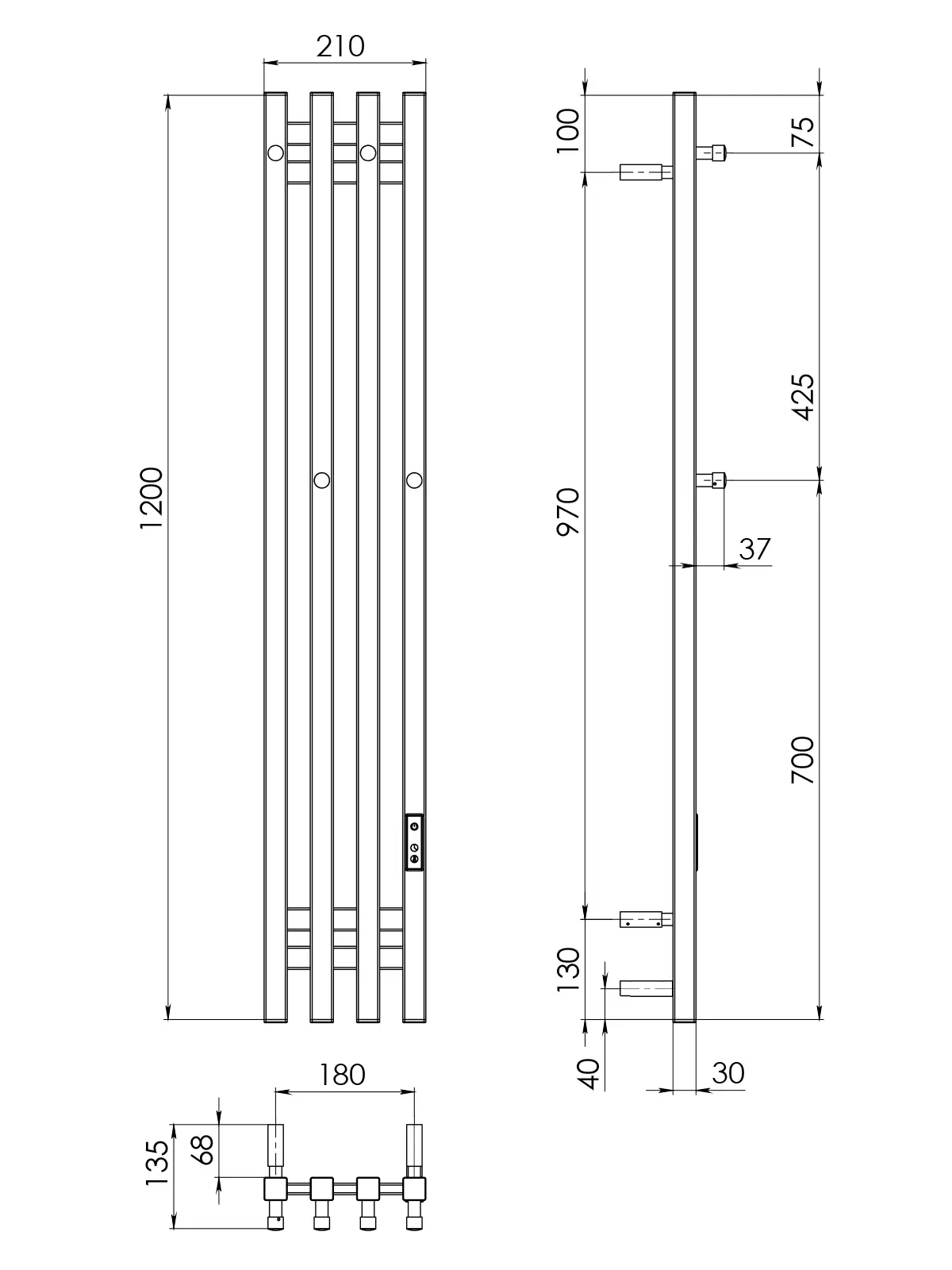 Высота полотенцесушителя, мм